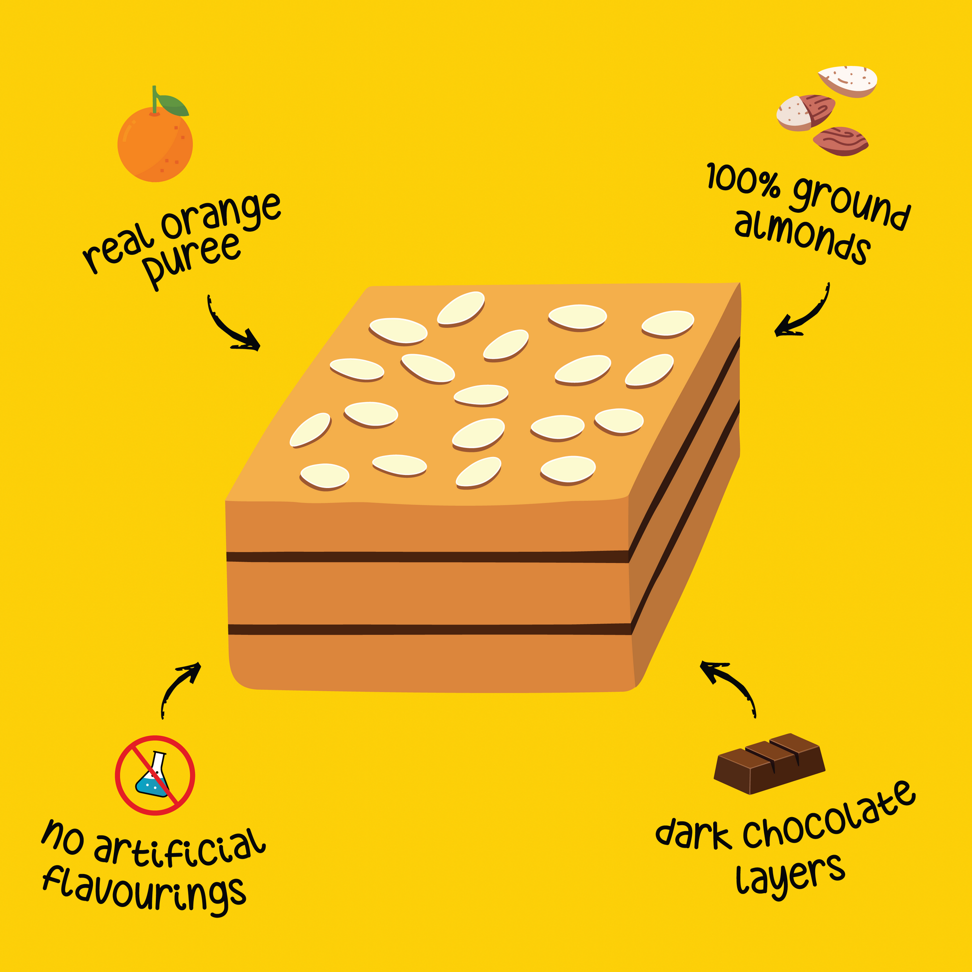 Our Orange Chocolate Cake is a heartfelt treat made for everyone to enjoy. Rich dark chocolate is layered between a sponge made of vibrant whole oranges, finely ground almonds and farm fresh eggs from Japan, all coming together in a perfectly moist and flavourful cake that is completely gluten- and dairy-free made without any added oil or fat.